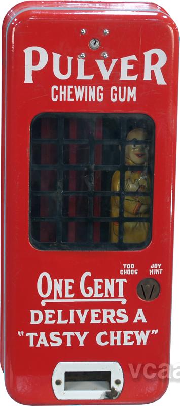 1 Cent Porcelain Pulver Chewing Gum Vending Machine "Delivers A Tasty Chew" w/ the "yellow kid" in very nice condition w/ keys