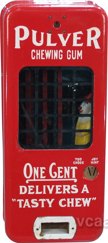 1 Cent Red Porcelain Pulver Chewing Gum Vending Machine "Delivers A Tasty Chew" w/ the clown inside