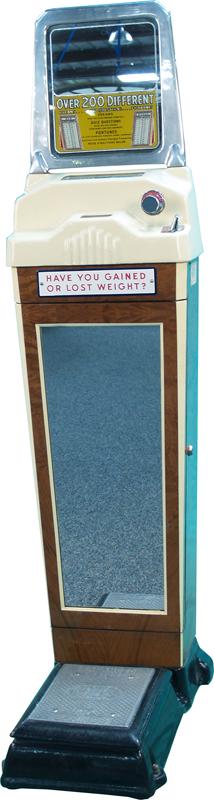 1 Cent Watling Floor Model Fortune Scale, brown w/ shipping bracket w/ keys