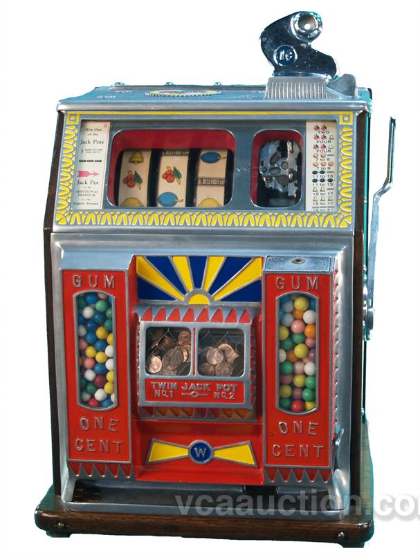 1 Cent Watling Twin Jackpot Twin Gumball Slot Machine w/ Keys