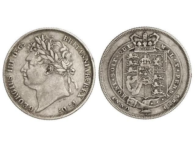 1 Chelín. 1824. JORGE IV. (Pequeños golpecitos). KM-687; Spink-3811. MBC+/MBC.
