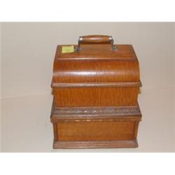 <b>Description: </b>mechanism turns oak case 12" x 8 1/2" x 12 3/4" h