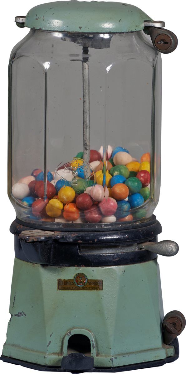 Circa 1936. Green porcelain base and lid. Octagon shaped globe with barrel lock and key. Condition (Very Good). Size 13-1/2" x 7-1/4" .