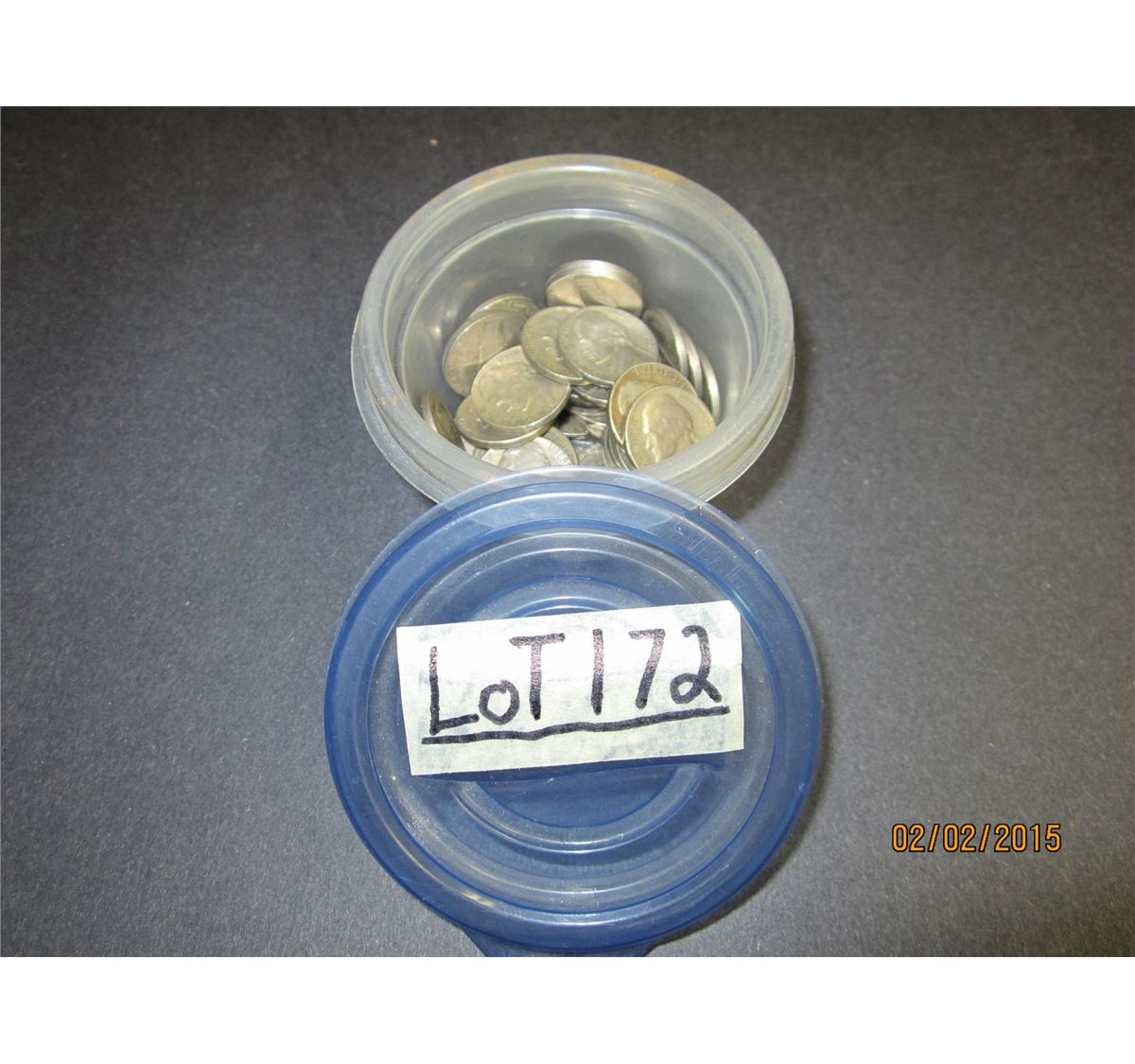 1 - Container of older U.S 5 cent coins. Date range from 1940 - 1959.