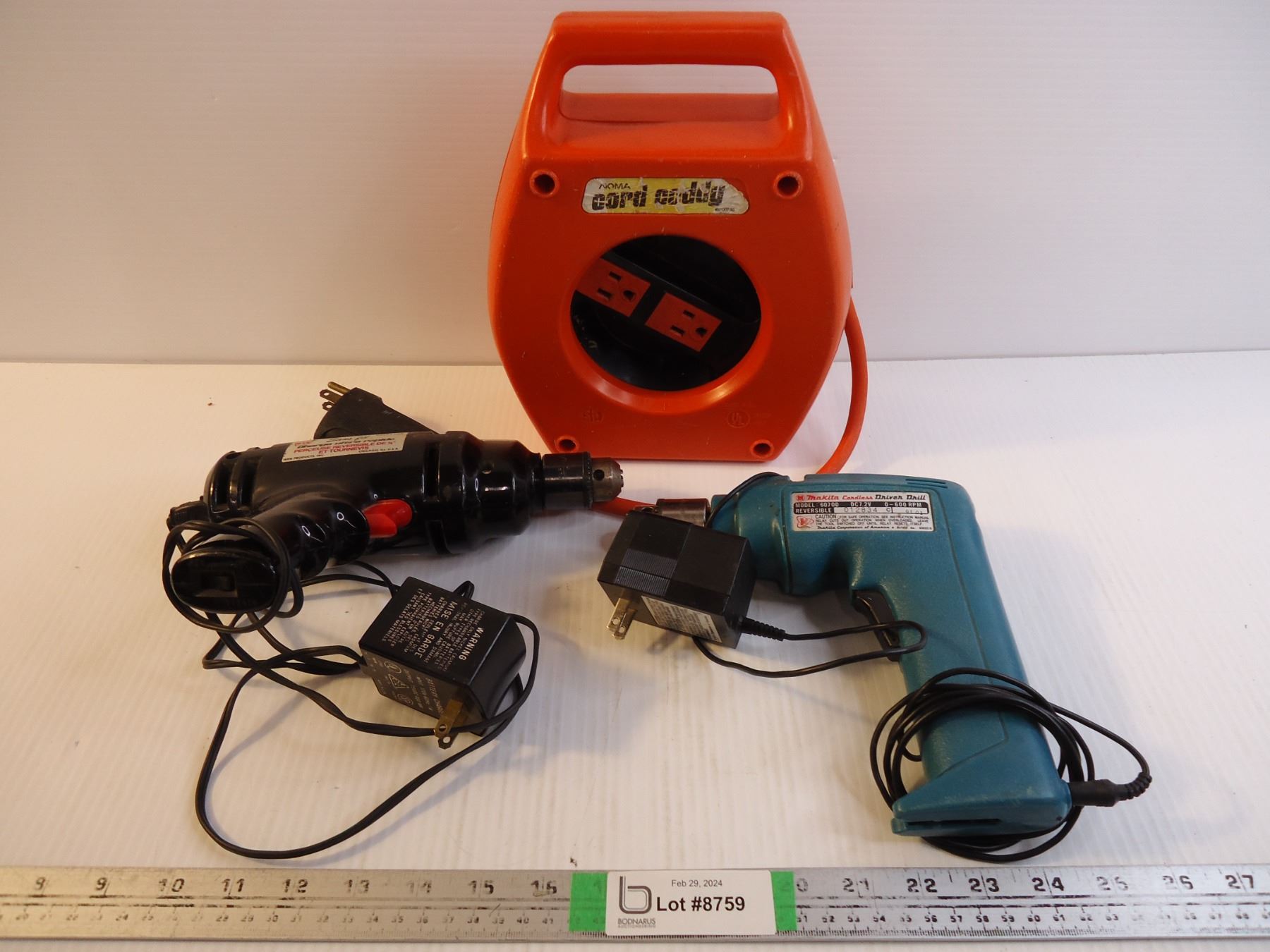 (1) Cord Caddy and (2) Cordless Drills(both did not power on, may need charging-as is)