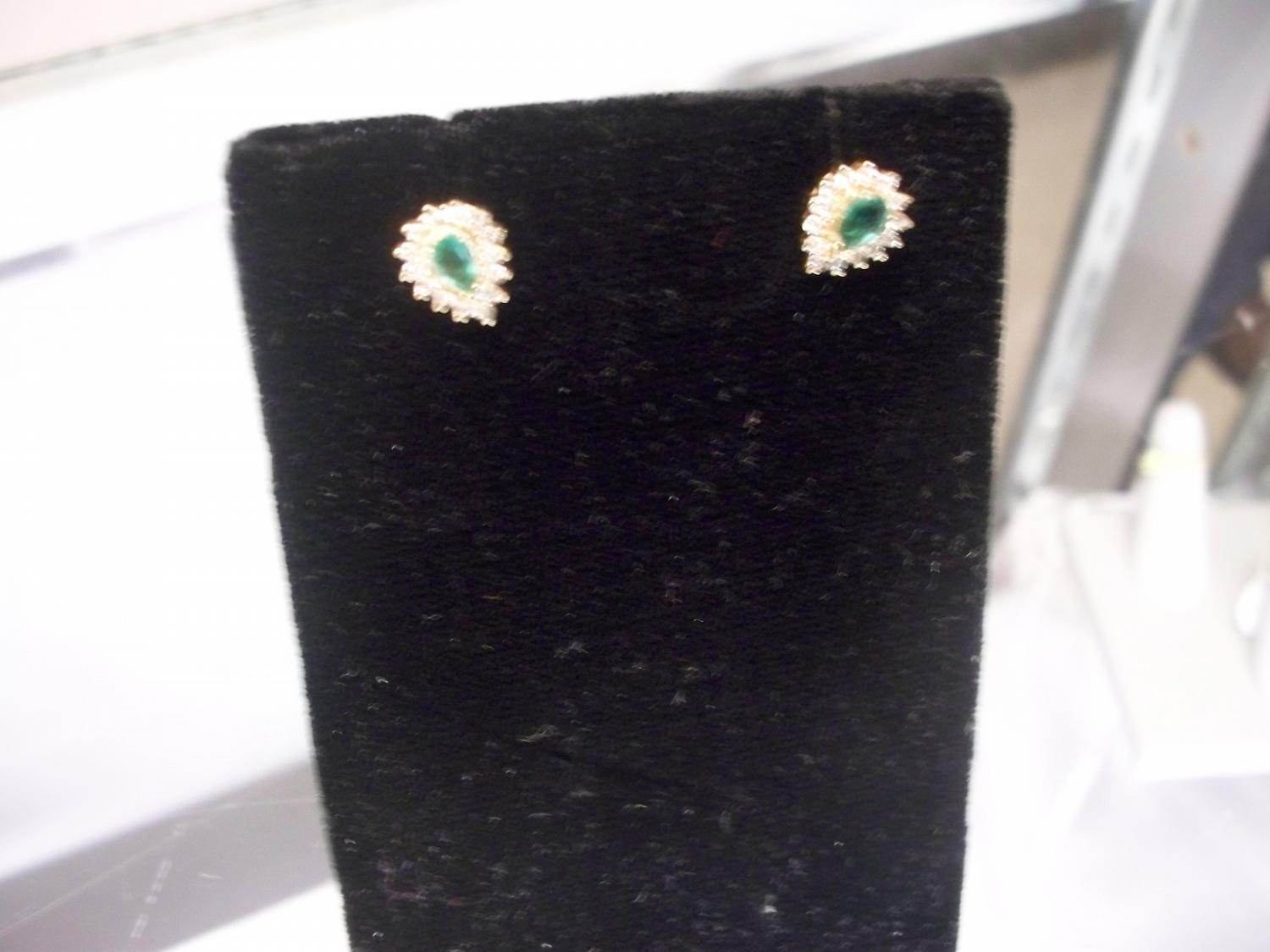 1 Ct Diamond & Emerald Heart Shaped Earrings, 14K Gold, 5 Grams