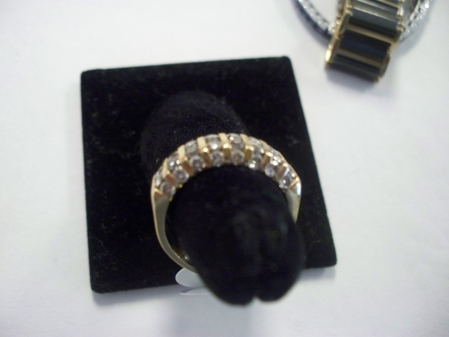 1 Ct. Two Row Diamond Band W/Diamonds Also Inset On Side of Band, 7.4 Grams 14K Gold