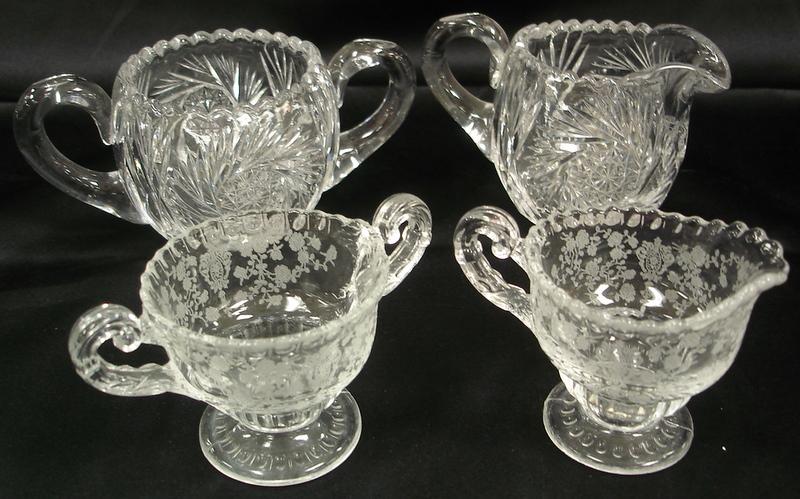 1 Cut & 1 Etched Glass Sugar & Creamers