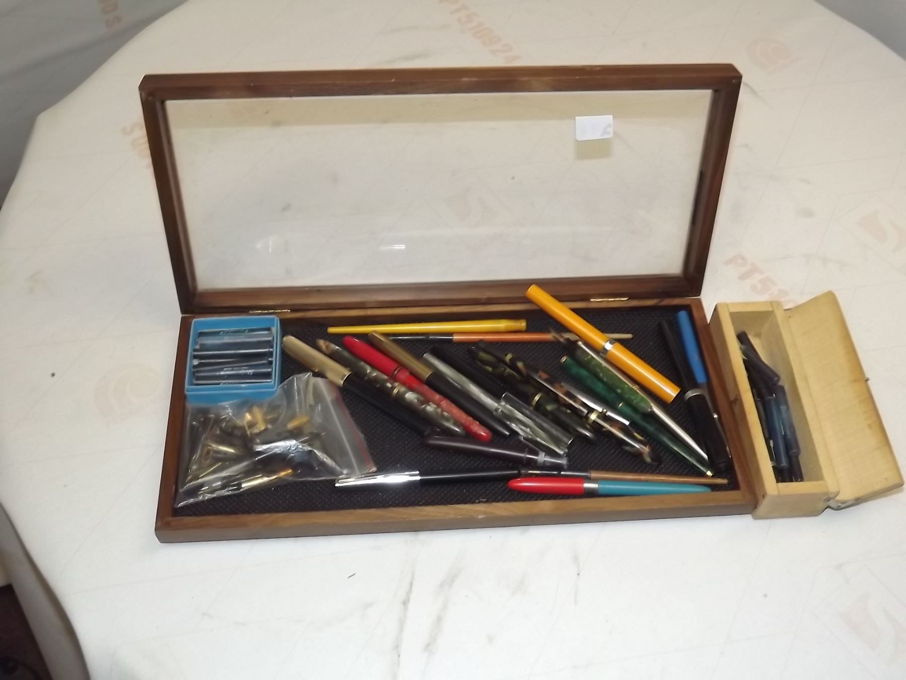 1 DISPLAY CASE OF FOUNTIAN PENS WITH ACCESSORIES