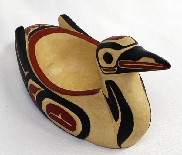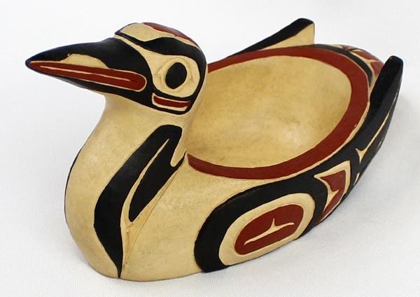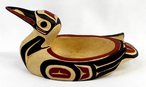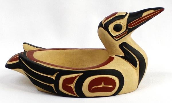 1 Decorative Carved Loon Bowl, measures 8.5'' x 4'' x 4.5'', Northwest Coast motif