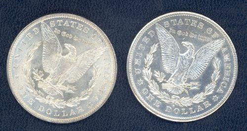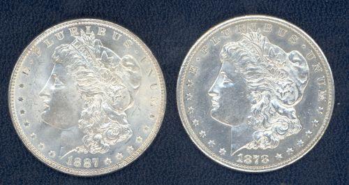 USA; 1 Dollar 1878-S, MS-62, 1 Dollar 1887, MS-64. Lot of 2 Morgan Dollars.