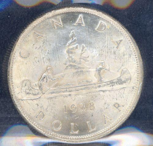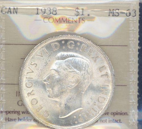 1 Dollar 1938, ICCS certified MS-63. Full original luster and eye appeal. No carbone spot on both side.