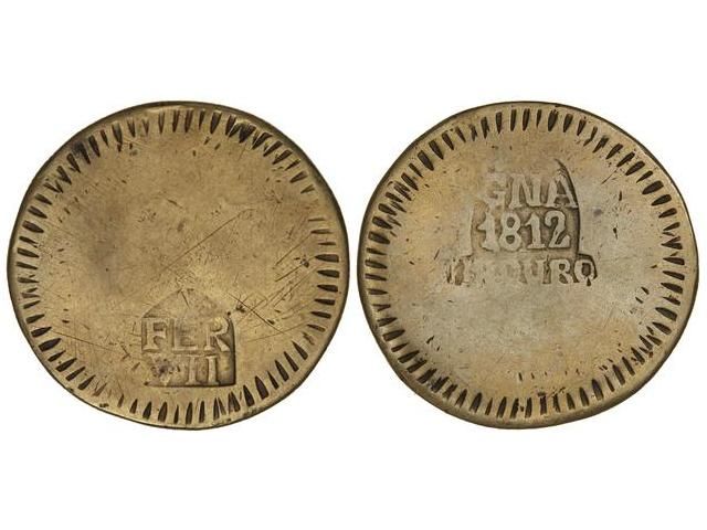1 Duro. 1812. GIRONA. Latón. FALSA de ÉPOCA. MBC-.