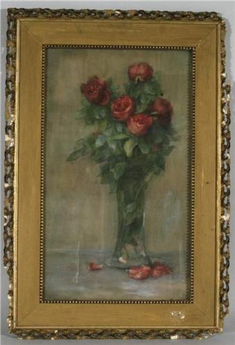 1 E.M. SCOTT, (probably Emily M. Scott 1832-1915), 27"x16" w/c, still life with roses