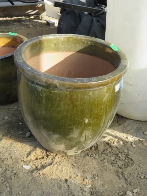 1 EARTHENWARE FLOWER POT, GREEN 19X19
