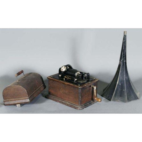1 EDISON STANDARD CYLINDER<BR>PHONOGRAPH with horn and box<BR>of cylinders <BR>CONDITION REPORT: very good with wear to case.<BR>PACKING AND SHIPPING see recommended.
