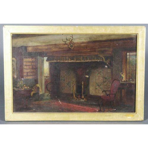 1 EDWARD LAMSON HENRY<BR>Room Interior<BR>12"x19" oil on canvas<BR>signed lower right <BR>CONDITION REPORT: dirty, several scuffs and scratches.<BR>PACKING AND SHIPPING (excluding insurance) by Fairfield Auction to points within the Continental U.S.A. (all other international must be handled by 3rd party shipper) $40.