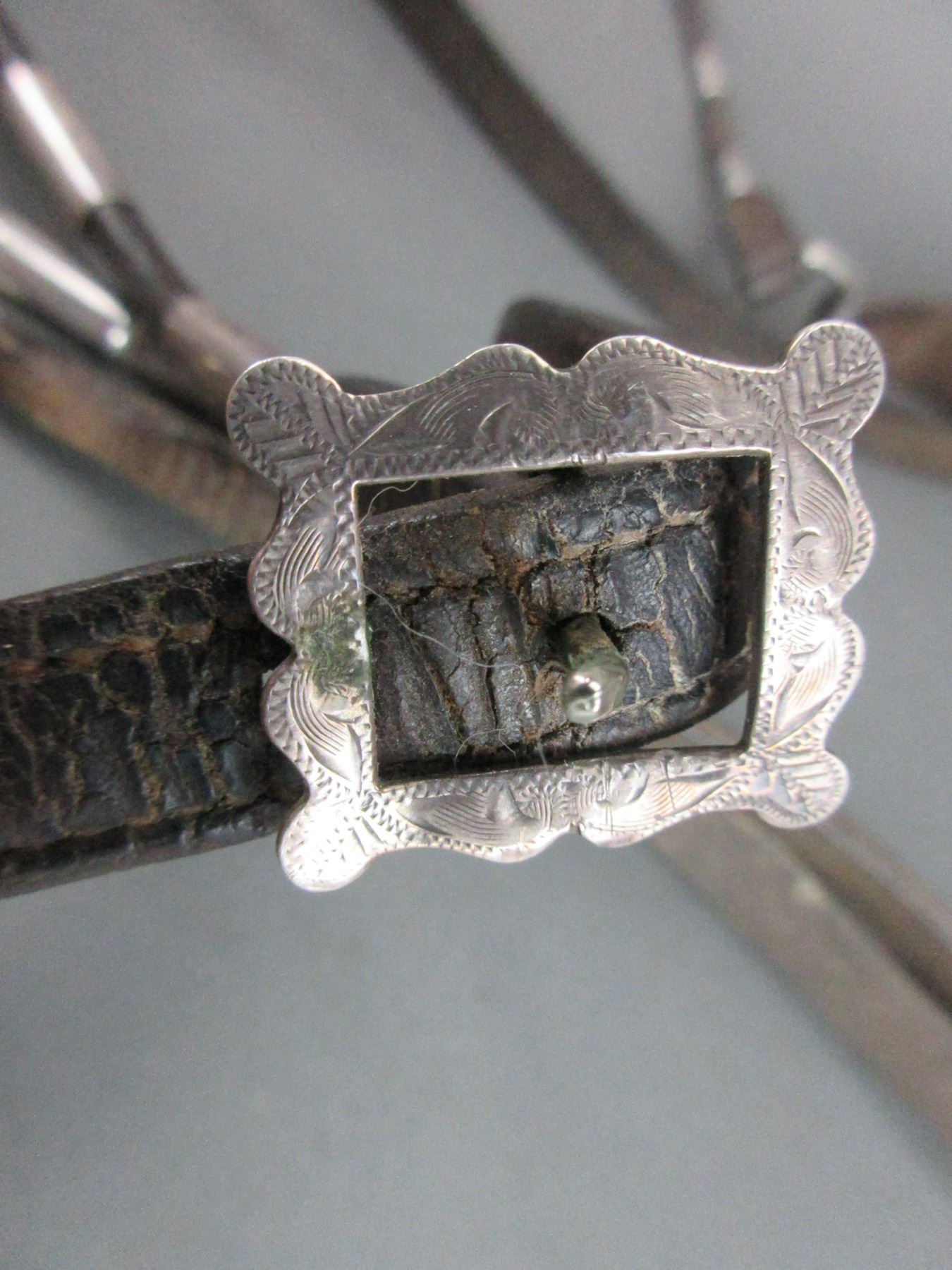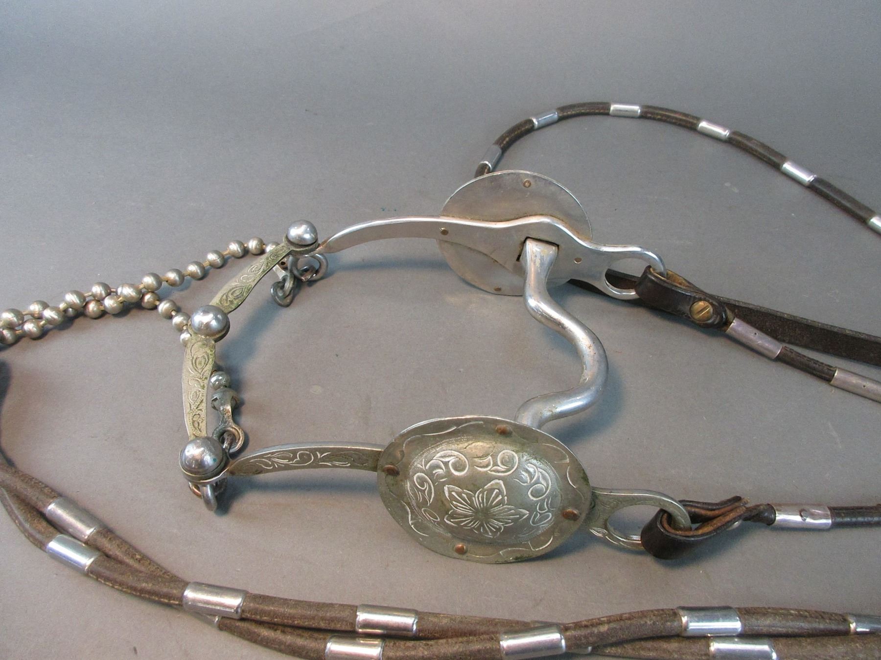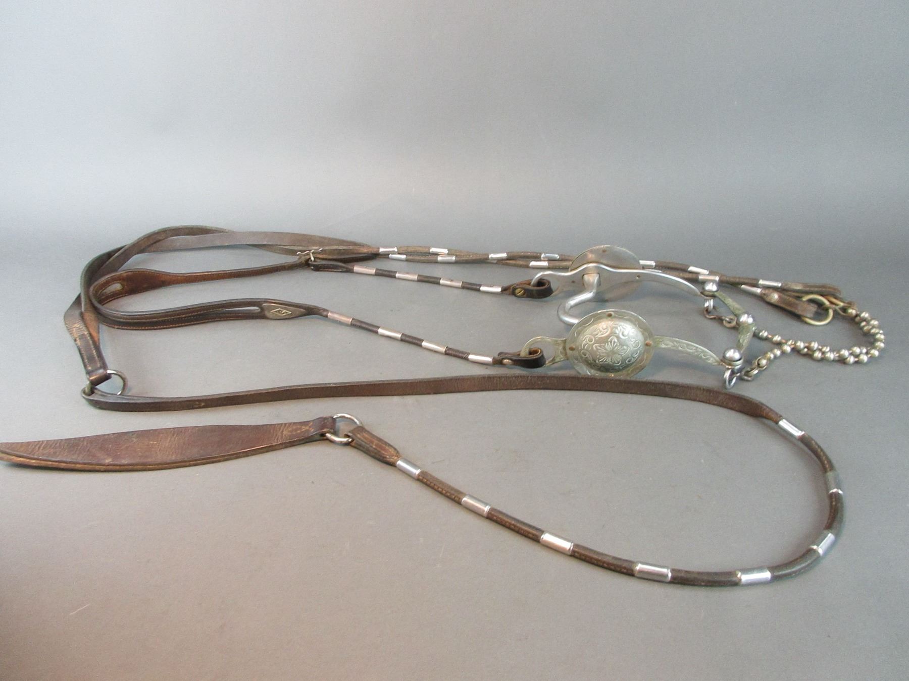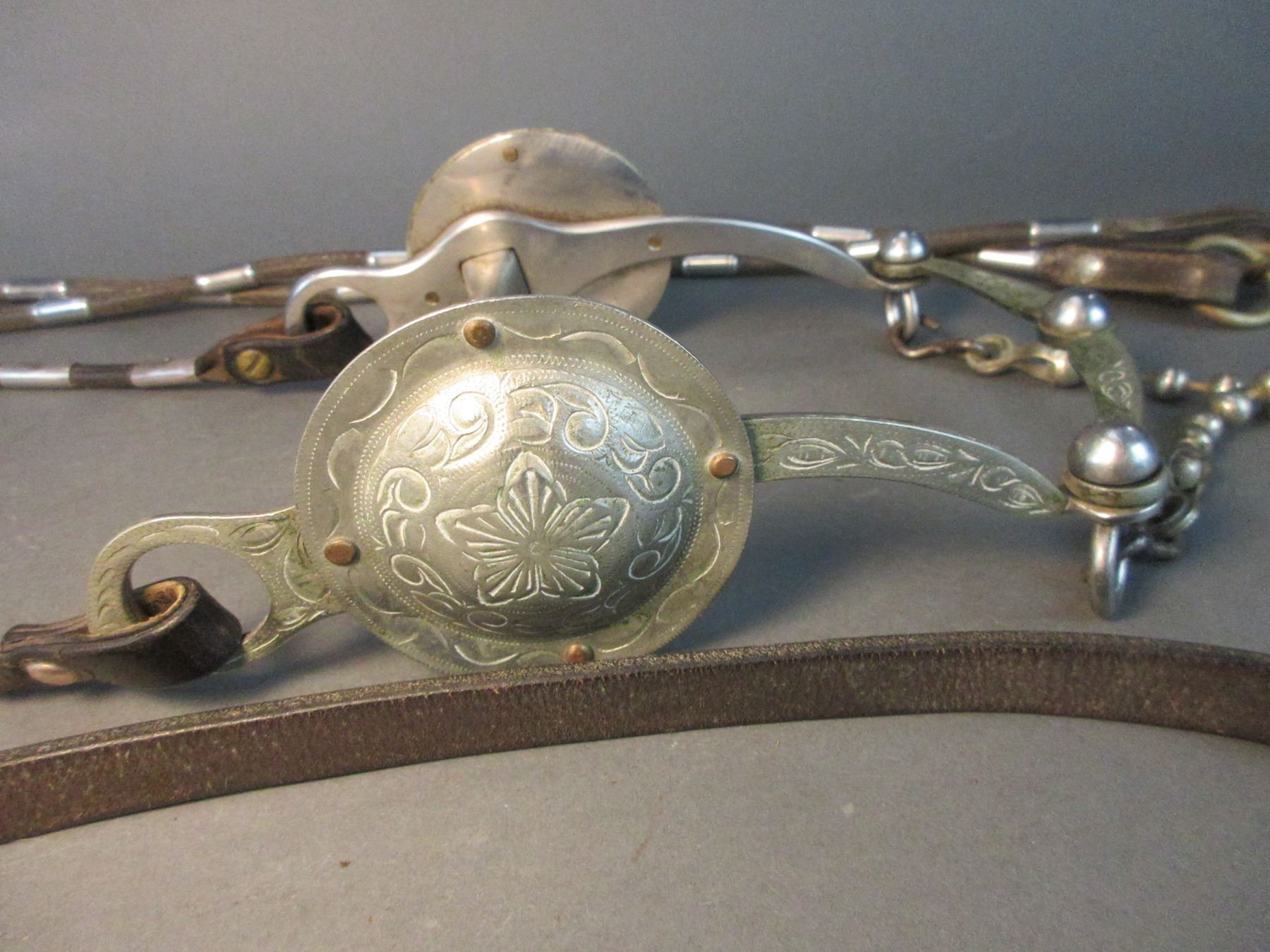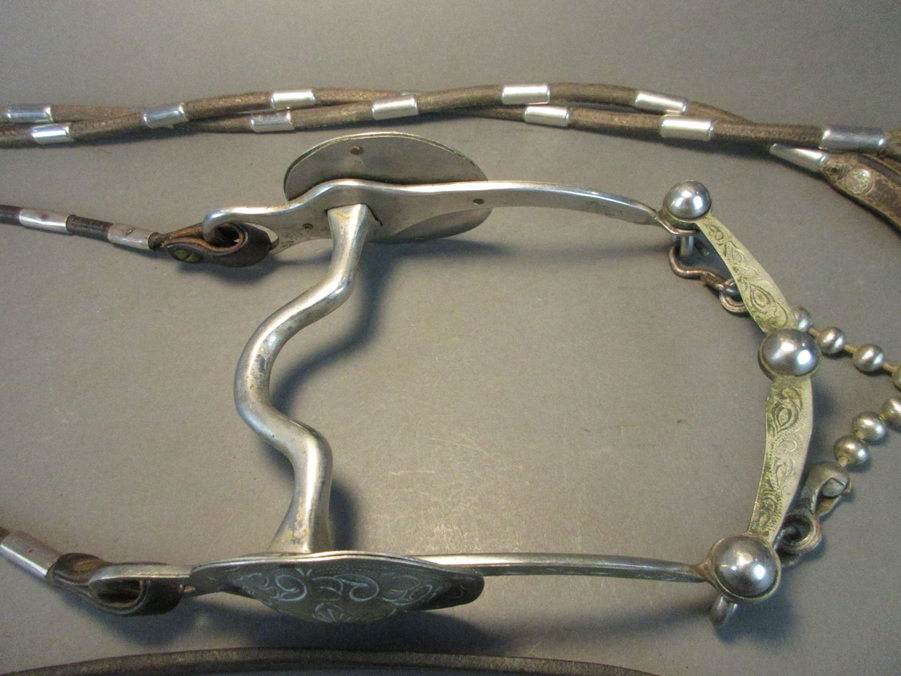 1 Eared Rolled Headstall- Buckle Marked Sterling- Ferrules On Headstall And Reins- Overlaid Curb Bit With 3" Conchos- Ball Rein Chains- Diamond Bar S Brand On Headstall- Fair Condition