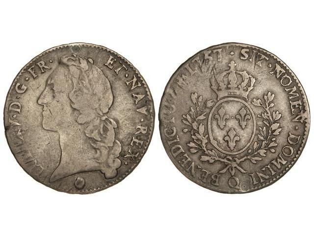 1 Ecu. 1757-Q. LUIS XV. PERPIGNAN. AR. Pátina. (Pequeños golpecitos y rayitas). C-47.9. MBC-.