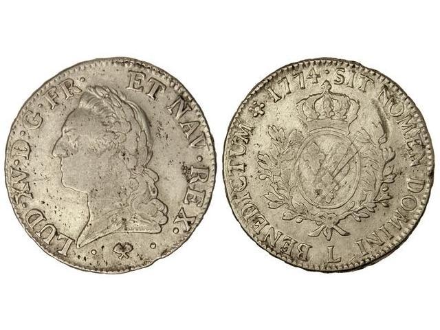 1 Ecu. 1774-L. LUIS XV. BAYONA. AR. (Rayitas y golpecitos). KM-551.9. MBC-.