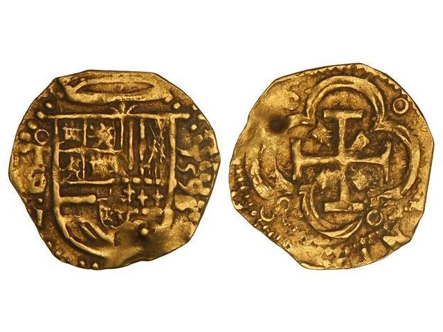 1 Escudo. - 1595. - TOLEDO. - G. - 3,30 grs. Golpe de punzón. MUY RARA. Cal-127 mismo ejemplar. MBC. - -