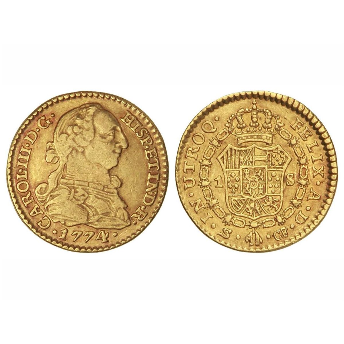 1 Escudo. - 1774. - SEVILLA. - C.F. - (Pequeños golpecitos en anverso). Cal-144. MBC-/MBC+. - -