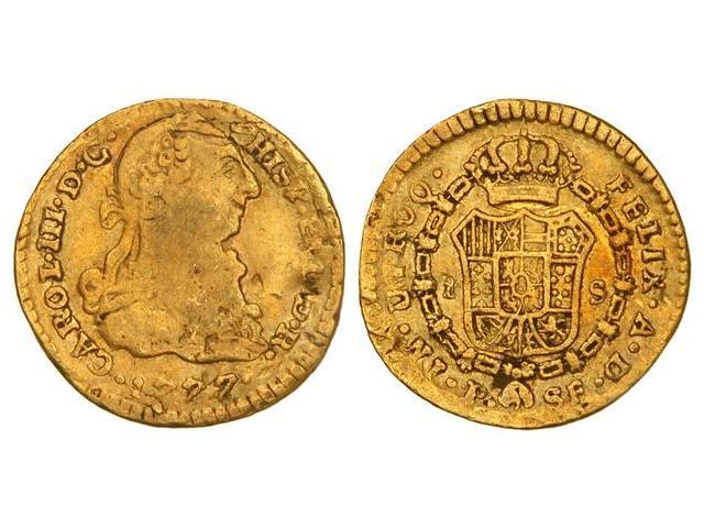 1 Escudo. 1777. POPAYÁN. S.F. Cal-676. BC+.