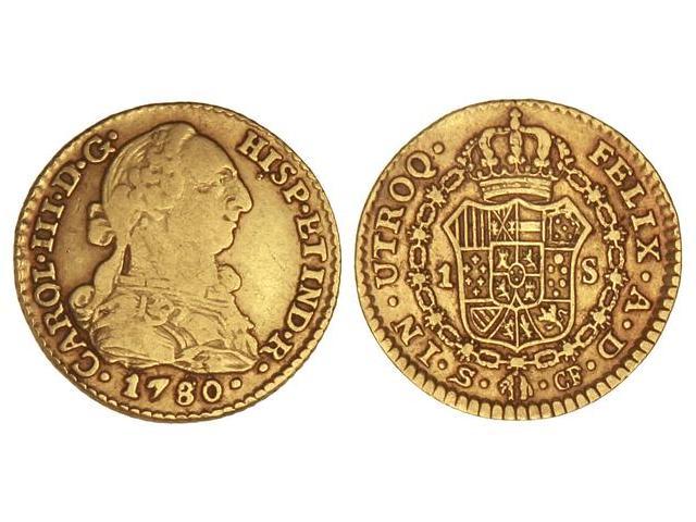1 Escudo. 1780. SEVILLA. C.F. (Pequeños golpecitos y rayitas). Cal-746. MBC-/MBC.