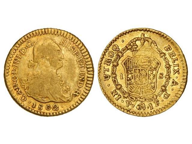 1 Escudo. 1802. POPAYÁN. J.F. Restos de brillo original. Cal-533. MBC+.