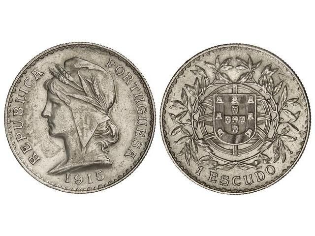 1 Escudo. 1915. REPÚBLICA. AR. KM-564. EBC.