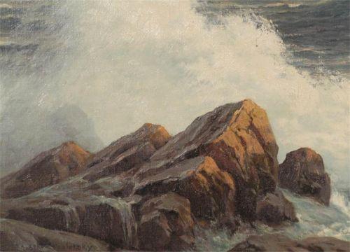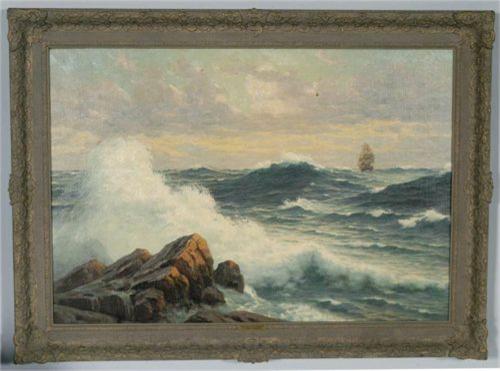 1 F.A. KOKO-MICOLETZKY, 27"x39" oil on canvas, titled, Brandung in der Normandie,CONDITION: EXCELLENT,