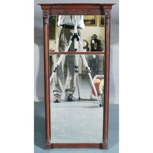 1 FEDERAL MAHOGANY TWO-PART<BR>MIRROR with reeded columns and<BR>carved frieze, all original,<BR>circa 1820 <BR>CONDITION REPORT: excellent.<BR>PACKING AND SHIPPING - see recommended.