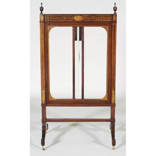 1 FINE FEDERAL INLAID FIRE<BR>SCREEN<BR>probably mid-Atlantic States<BR>51" high, 27" wide<BR>circa 1810 <BR>CONDITION REPORT: excellent, but with the top two corbels replaced with painted (rather than inlaid) substitutes.<BR>PACKING AND SHIPPING -see recommended.