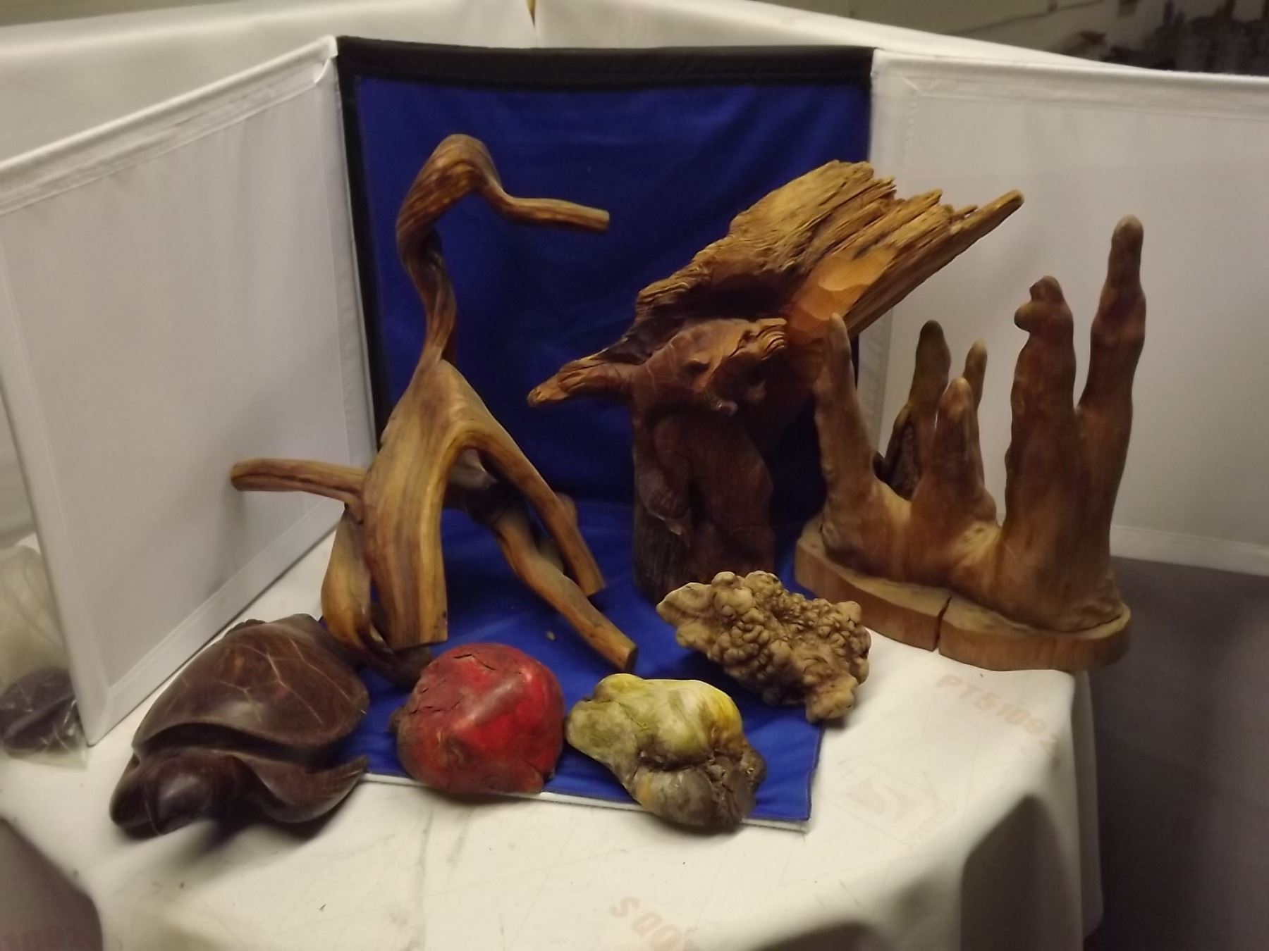 1 FLAT OF DRIFT WOOD AND WOOD CARVING 8 PIECES
