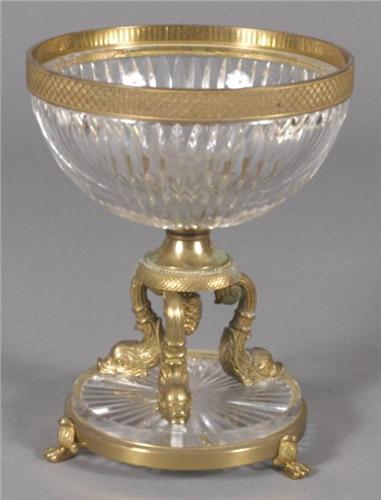 1 FRENCH BRONZE AND CRYSTAL COMPOTE