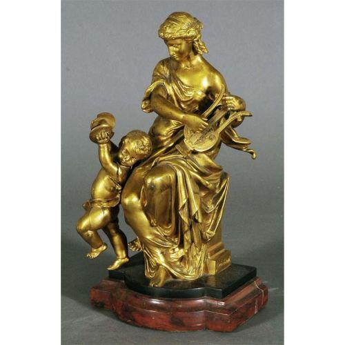 1 FRENCH GILT BRONZE FIGURE OF<BR>DIANA WITH CHERUB<BR>11" high overall<BR>impressed "Guichard"??<BR>late 19th century <BR>CONDITION REPORT: excellent.<BR>PACKING AND SHIPPING (excluding insurance) by Fairfield Auction to points within the Continental U.S.A. (all other international must be handled by 3rd party shipper) $40.