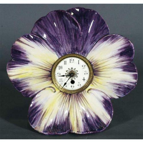 1 FRENCH MAJOLICA MANTLE CLOCK<BR>12" high, movement changed to<BR>quartz, circa 1900 <BR>CONDITION REPORT: excellent.<BR>PACKING AND SHIPPING - $30 excluding insurance within the Continental USA only (International shipping through 3rd party shipper. We recommend the Newtown UPS Store.)