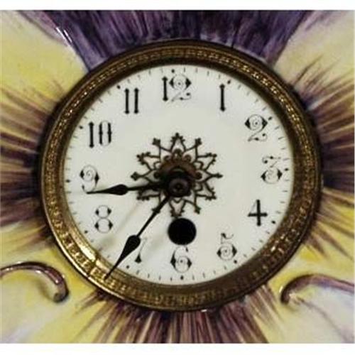 1 FRENCH MAJOLICA MANTLE CLOCK 12" high, move