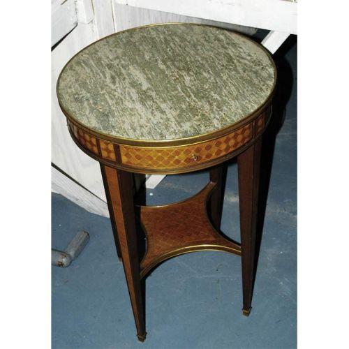1 FRENCH STYLE PARQUETRY ROUND<BR>SIDE TABLE <BR>CONDITION REPORT: lacking two sabots.<BR>PACKING AND SHIPPING - see recommended.