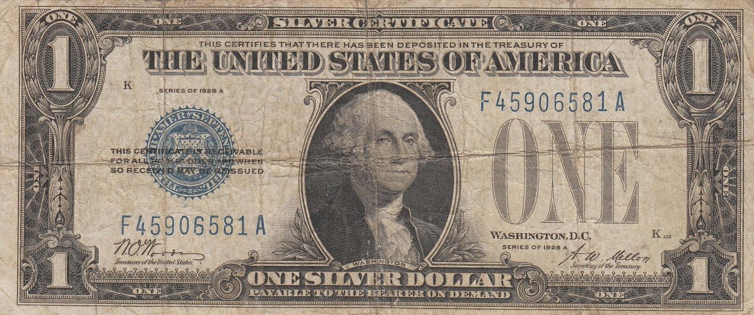 $1 FUNNY BACK SILVER CERTIFICATE 1928 A
