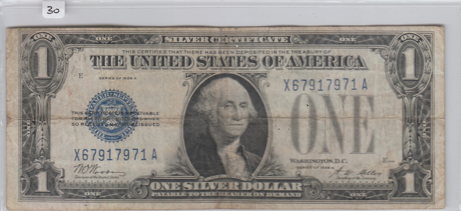 $1 FUNNY BACK SILVER CERTIFICATE 1928 A