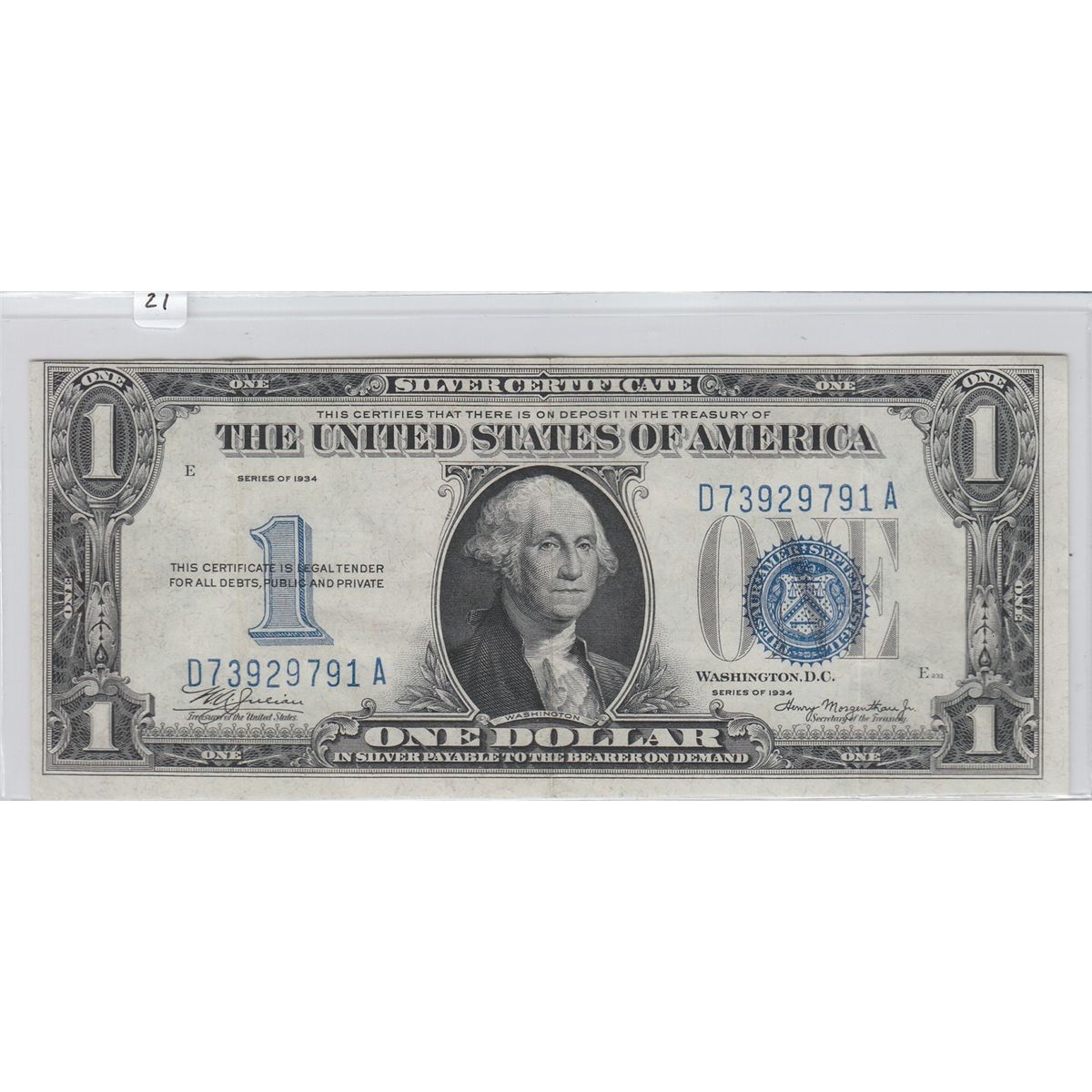 $1 FUNNY BACK SILVER CERTIFICATE 1934 BOLD CRISP