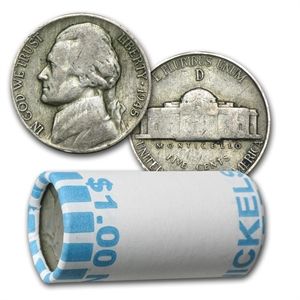 $1 Face Value 35% Silver War Nickels **|**|** Year: 1942-1945 ; Mint Mark: Circulated ; Grade: Varies ; Denomination: 0.05 ; MSRP: $0