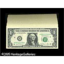<B>$1 Federal Reserve Note Quad Middle Radar Set. Choice Crisp Uncirculated or Better.</B></I><BR>Each radar note in this set has the same four numerals in the middle of its serial number.<BR> 181 notes Lot:16690