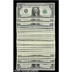 <B>$1 Federal Reserve Notes. Progressive Repeater Set. Choice Crisp Uncirculated or Better.</B></I><BR>The serial number for these repeater notes increase by a hundred from note to note. Only the following hundreds through 9900 have remained elusive - 3, 6, 8, 23, 25, 31, 35, 64, 67, 73, 83, 98, and 99.<BR> 86 notes Lot:16686