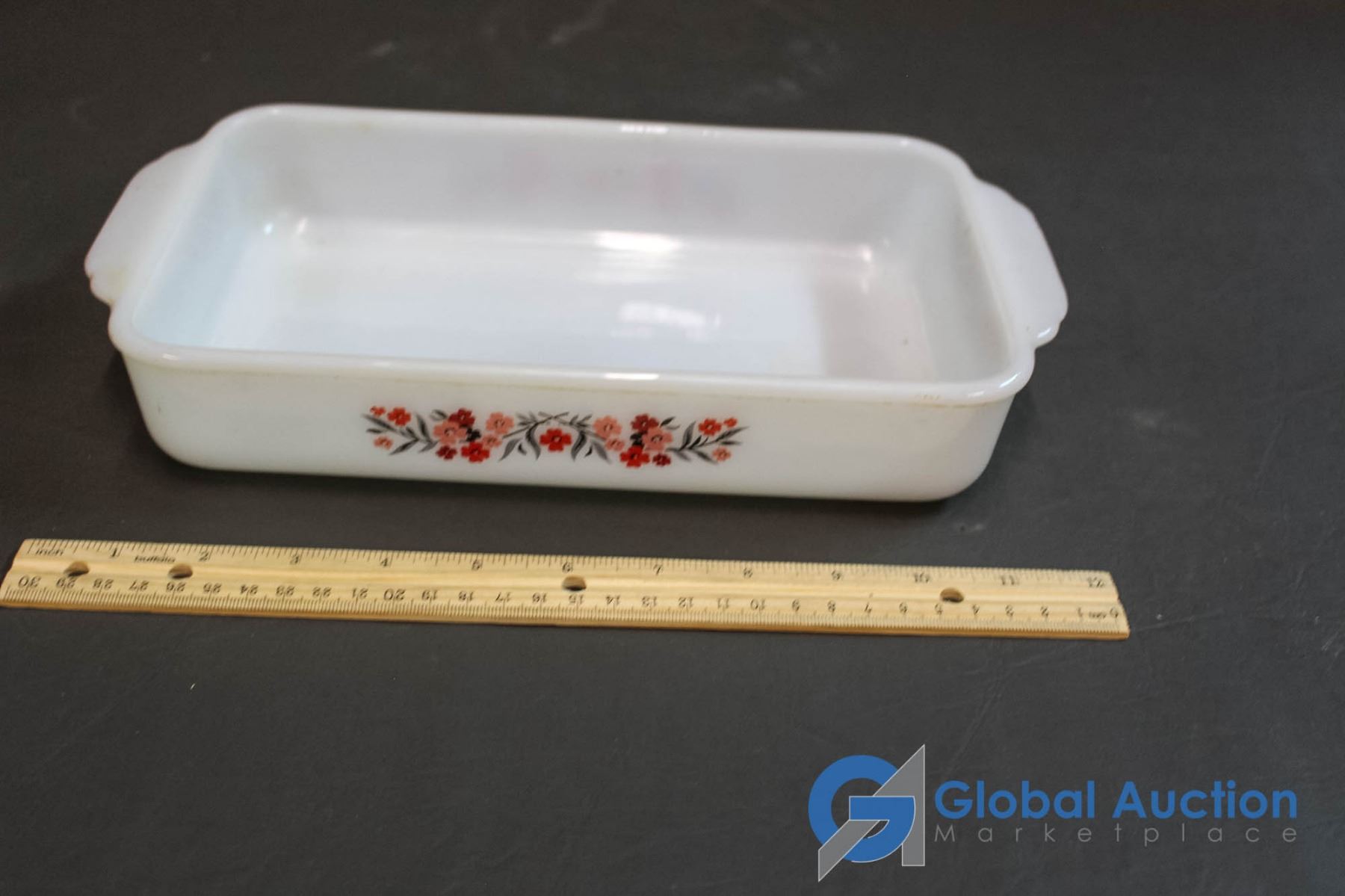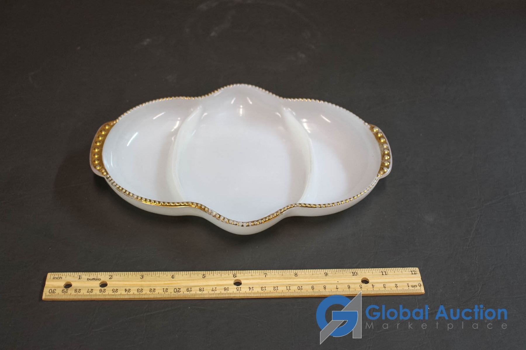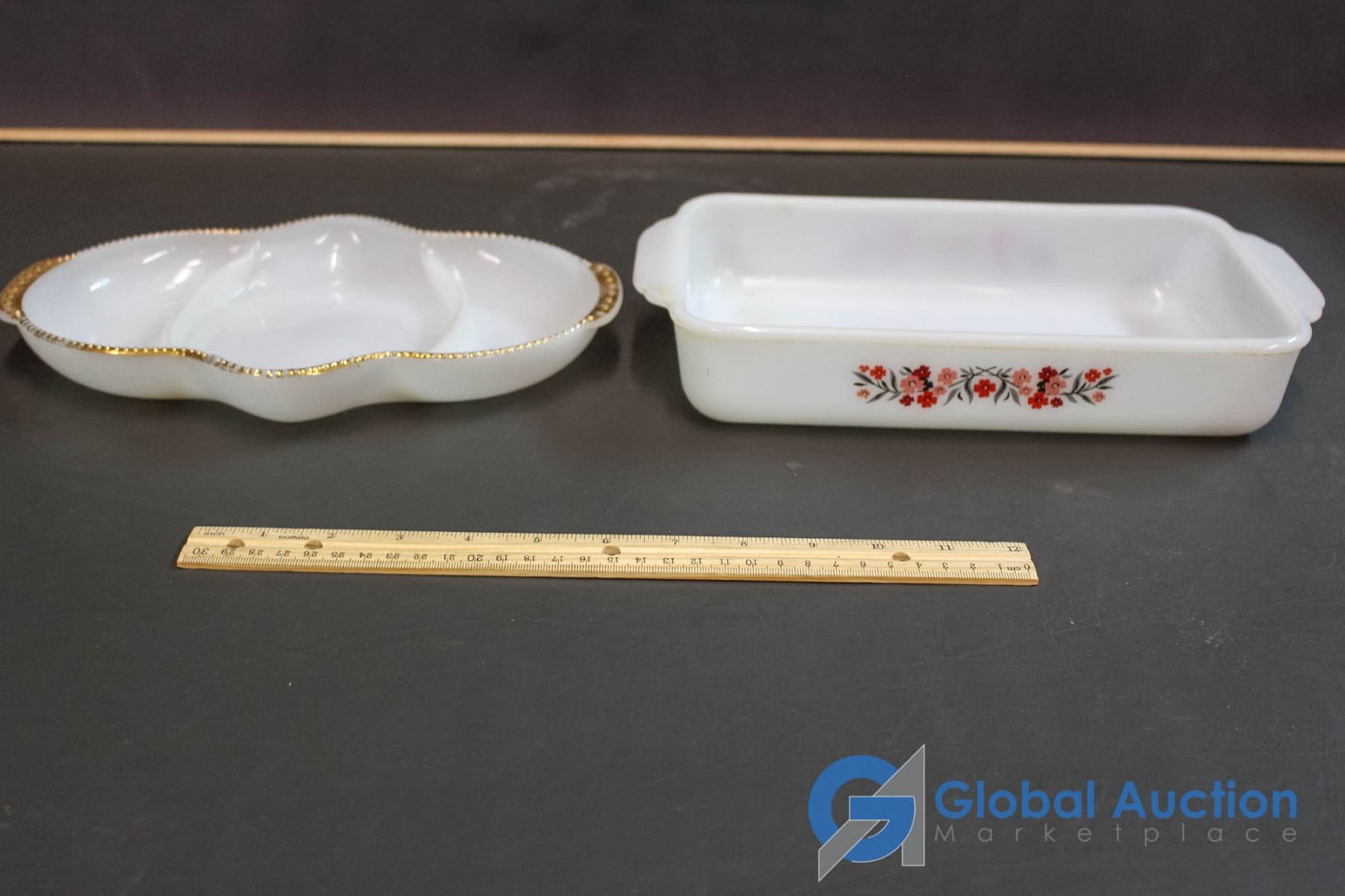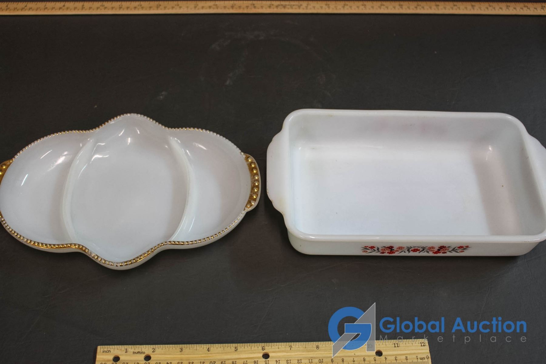 1 Fire-King Casserole Dish & 1 Fire-King Platter with Gold Trim