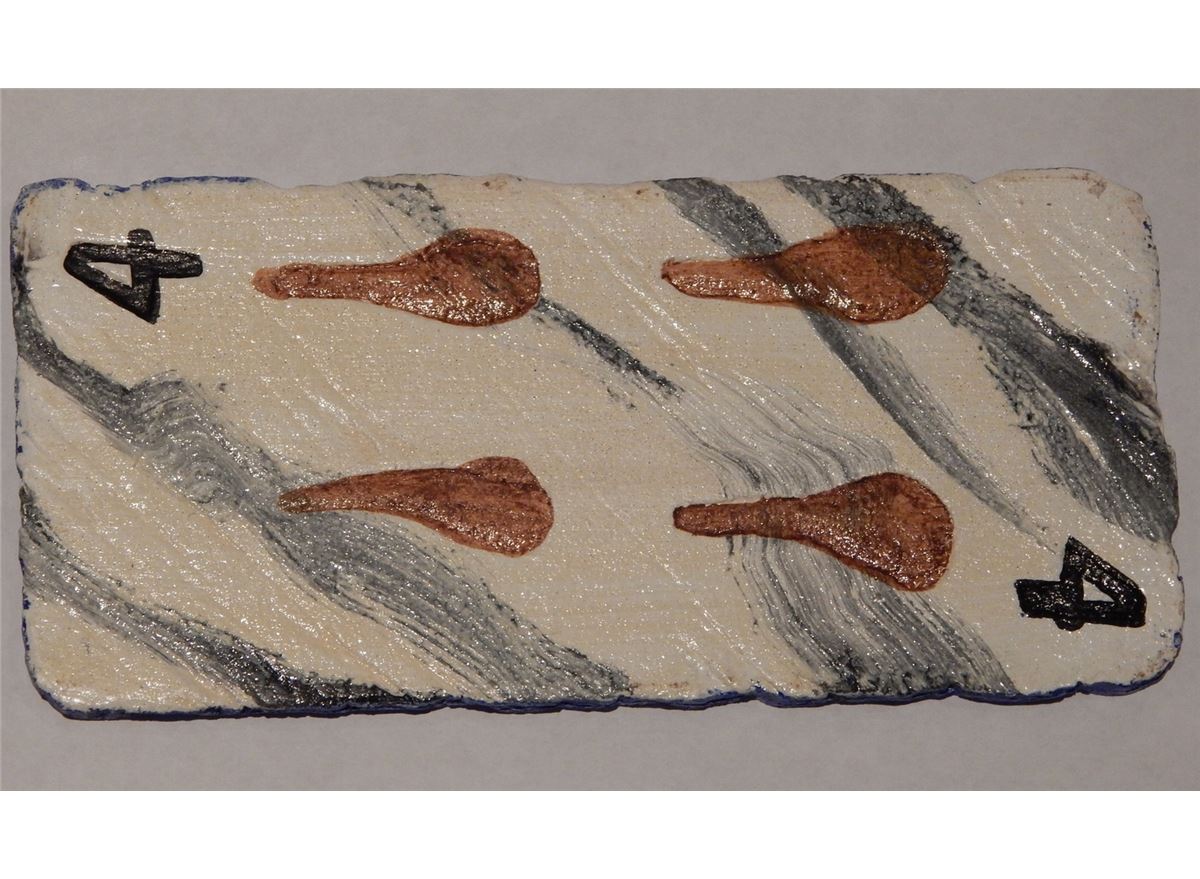 This is a screen used prop playing card depicting the 4 of clubs from the film "The Flintstones In Viva Rock Vegas." This item comes with a letter of authenticity from Star Wares.