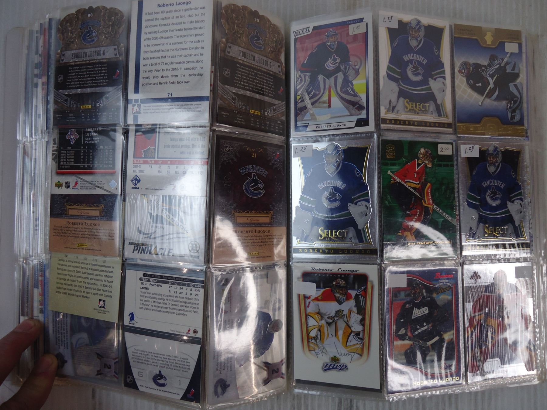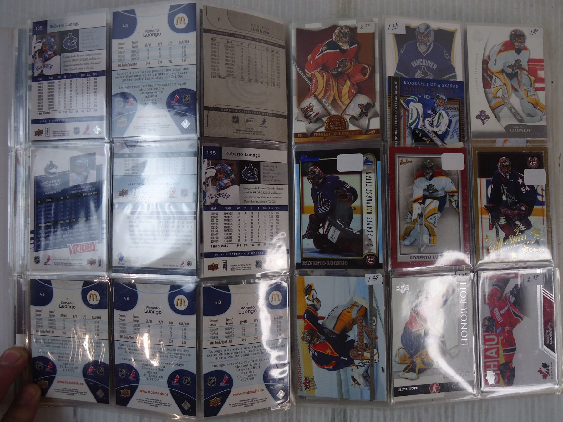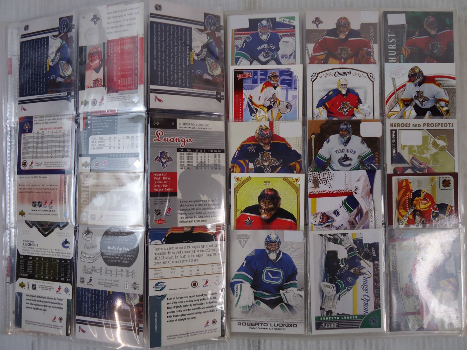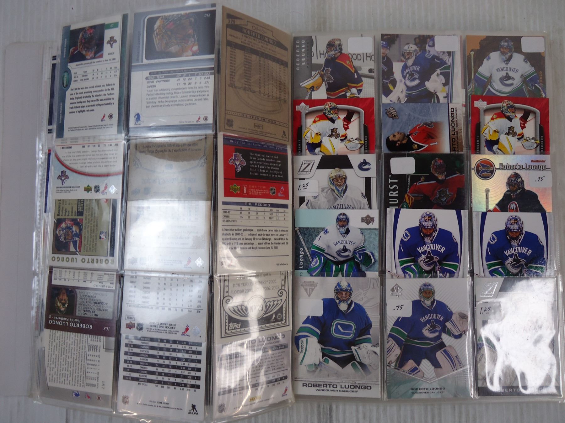 (1) Folder of Cards Featuring Goalie Roberto Luongo -over 20 pages