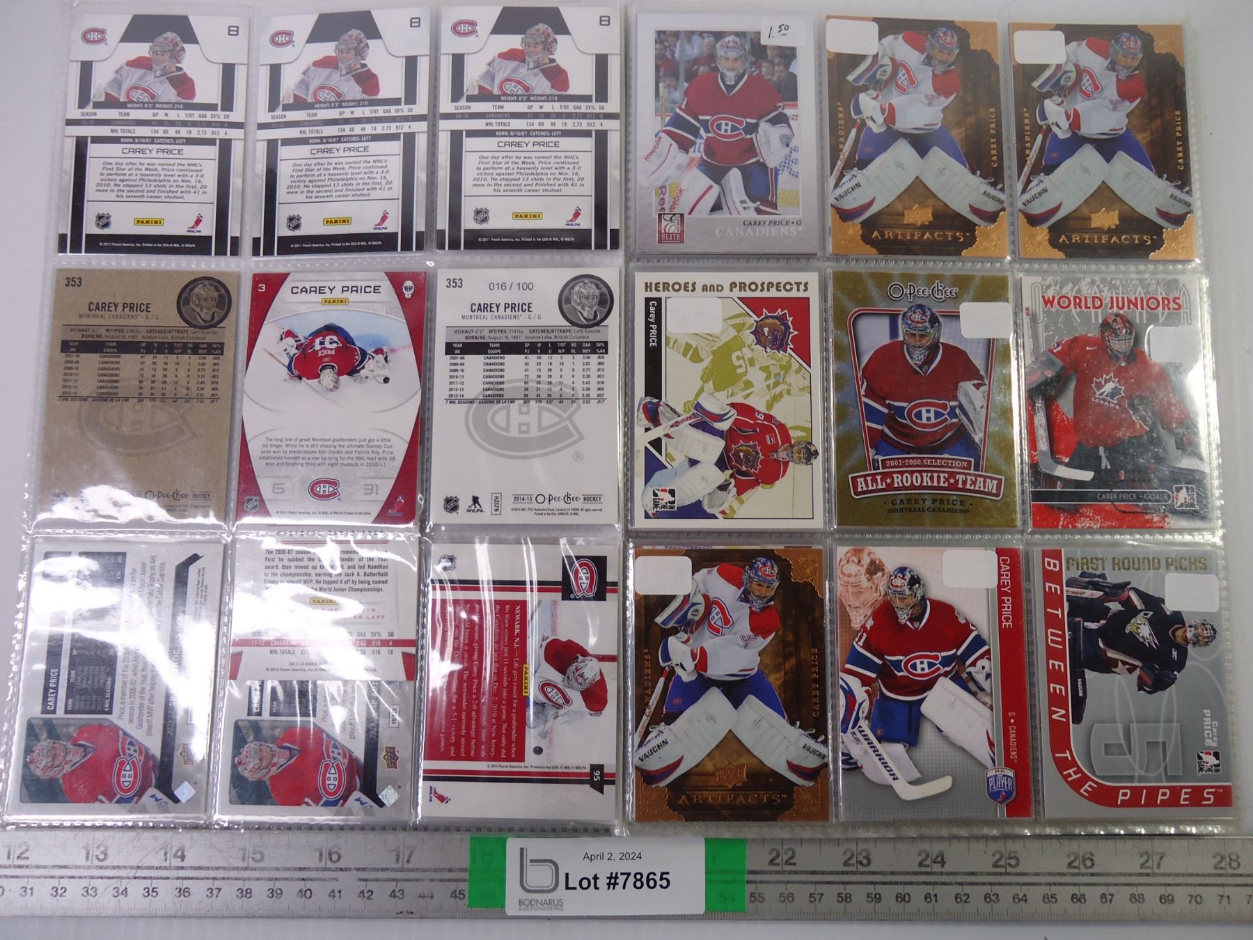 (1) Folder of Carey Price Cards- 19 sheets in total