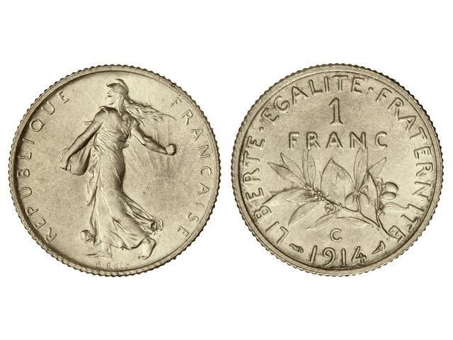 1 Francos. - 1914-C. - AR. (Leves golpecitos en anverso). KM-844.2. SC. - -
